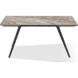 Lucia Double Extension Stone Top Metal Leg Dining Table in Rich Brown and Black
