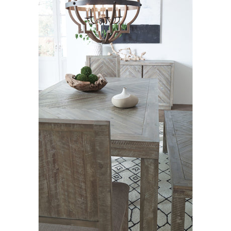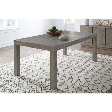 Herringbone Solid Wood Rectangular Dining Table in Rustic Latte