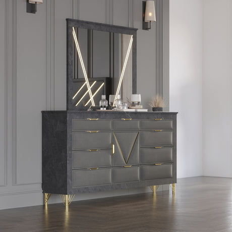 Lisbon - 2 Piece Dresser & Mirror Set - Gray