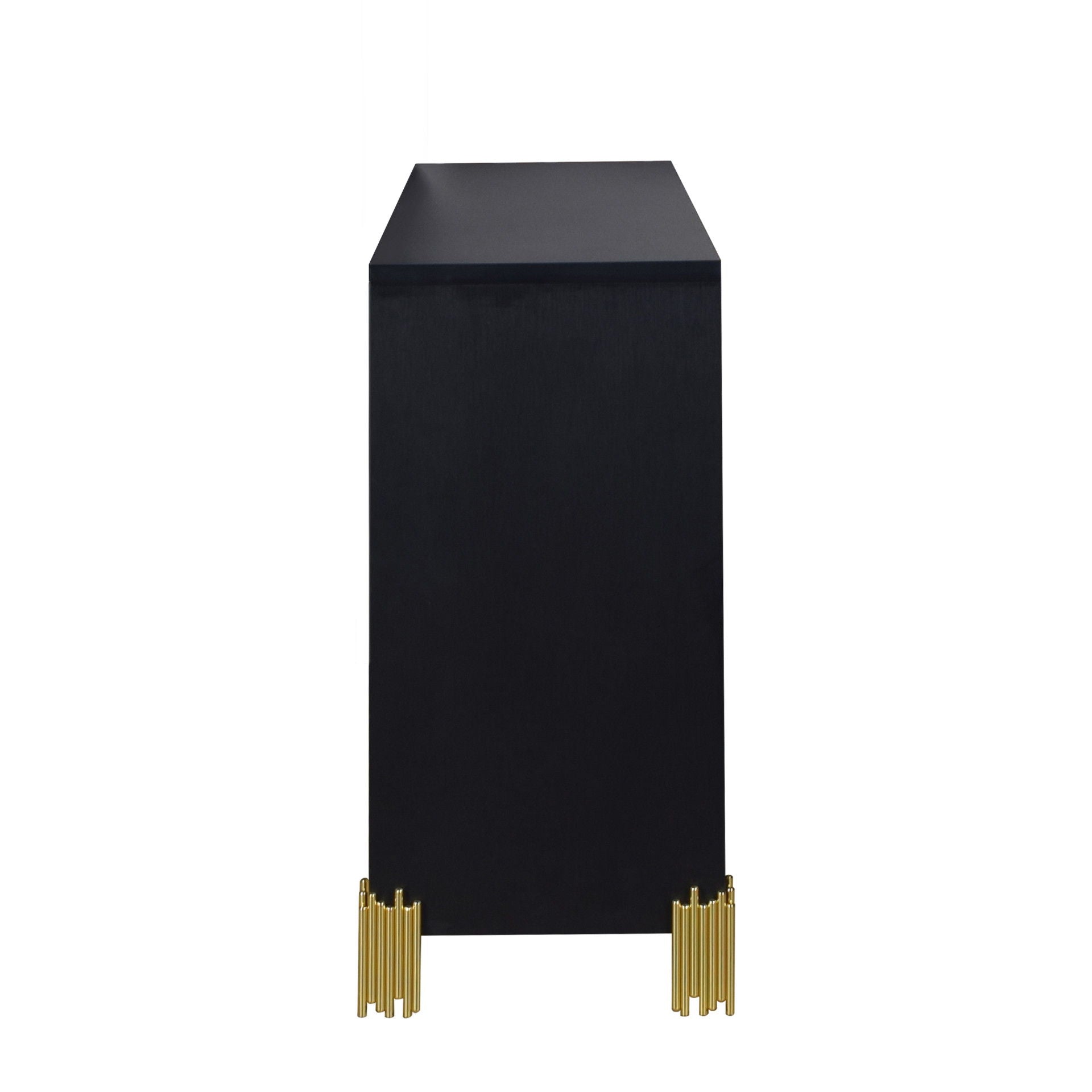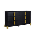 Introducing the Empire 6 Drawer Dresser in sleek black, a timeless addition to your bedroom decor. Crafted with durable eco-friendly materials and a sophisticated finish, this dresser exudes contemporary elegance. Its gleaming gold drawer pulls and feet evoke the enchanting allure of a city skyline at night. Inside, the drawers are meticulously crafted with English dovetail joinery and ball bearing glides, ensuring smooth and reliable operation. Enhance your bedroom with the Empire 6 Drawer Dresser, where quality meets style for a truly captivating ambiance.