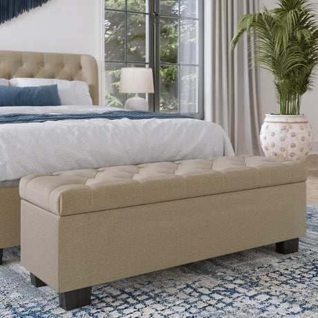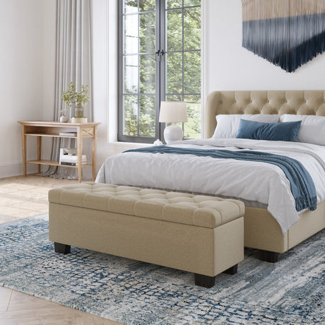 Dorsey Boucle Upholstered Wooden Bench in Granola and Ricotta