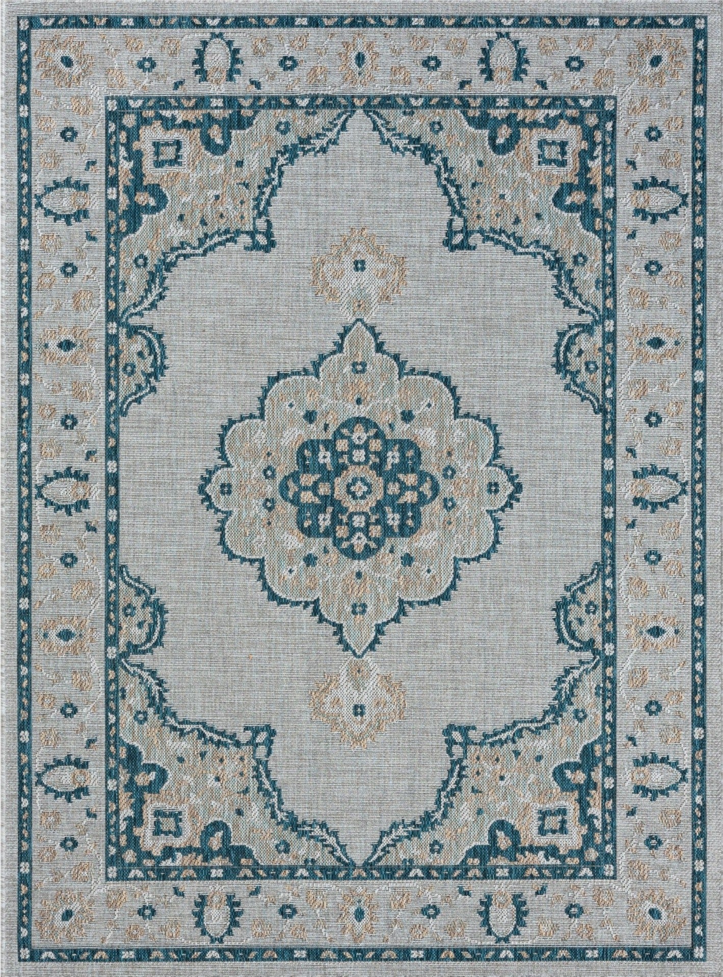 The Coastal 672 is a high end waterproof outdoor/indoor area rug that is perfect for any space. Crafted from 100% synthetic polypropylene fibers, the Coastal 672 features updated fashion color tones, mold, rot and stain resistance, and is easy to clean and maintain. The rug is pet-friendly and all-weather use, and the colorfast yarn won't fade in the sun. The Coastal 672 is also weather proof against rain, snow and moisture, and features a beautiful bordered medallion Persian design.