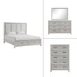 The Fiona Bedroom Set designed for ultimate comfort and convenience. The bed is complemented by a 6-drawer dresser and a 5-drawer chest, all exhibiting a harmonious blend of Acacia solids, manufactured woods, and oak veneer. This combination amplifies both the beauty of natural wood and the durability required for daily use. The Fiona Bedroom is enhanced by a multi-step finish, which accentuates the wood grain with wire brushing and glazing, culminating in a light, hue that radiates modern elegance. The classic design is evident through picture frame moldings, tapered legs, and sleek drawer pulls, while the genuine marble top on the dresser introduces a touch of opulence, seamlessly integrating with the woodโ€™s finish. Adhering to a transitional style, the Fiona Bedroom Suite effortlessly fits into various decor themes, from traditional to contemporary. The headboard, covered in a soft 100% polyester fabric, offers a luxurious backdrop for bedtime reading. Practicality is not overlooked, as the footboard includes two drawers for underbed storage, optimizing space for linens and blankets. Lastly, the suiteโ€™s drawers are a testament to craftsmanship, featuring French front and English back dovetail joinery and smooth full-extension glides, with top drawers lined in felt to safeguard your delicate items.