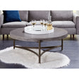 • With a unique mix of materials and finishes, this cocktail table blurs the lines between mid-century, industrial and modern; round coffee table goes well with sectional sofas
