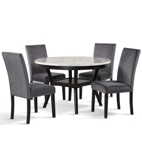 Faust - 5 Piece Dining Room Set (Adjustable Table & 4 Dining Chair) - Gray / White