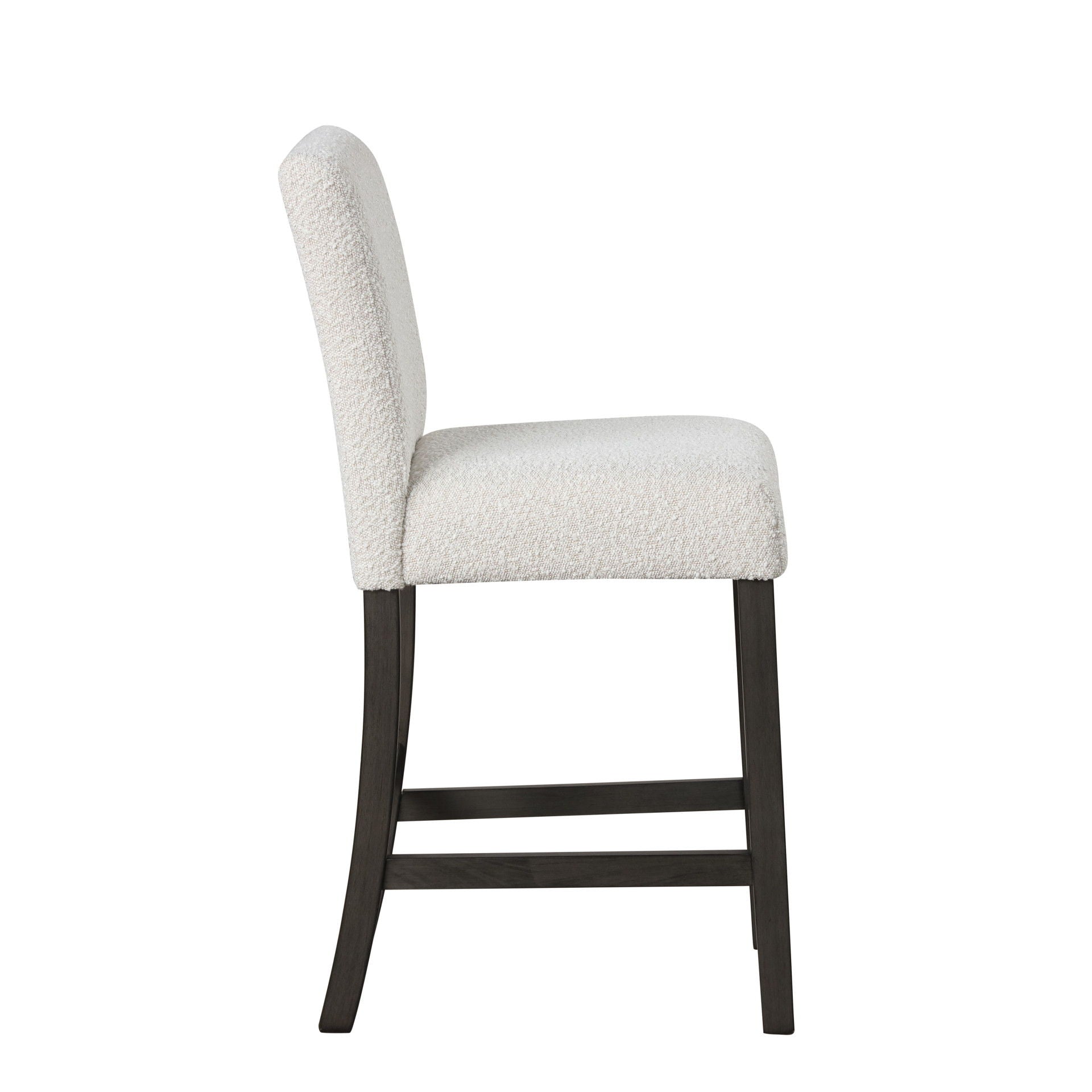 The High Line Upholstered Counter Dining Chairs combine durability, comfort, and style to enhance any living space. Each set includes two counter chairs, expertly crafted from solid Acacia and Rubberwood, along with high-quality manufactured woods and Birch veneers, ensuring durability and stability. The luxurious bouclรฉ fabric offers exceptional durability, making these chairs ideal for frequent use. The unique looped texture provides a plush, comfortable seating experience, adding both elegance and longevity to your dining area. Perfect for dining rooms, home offices, or as accent chairs in living spaces, these chairs add both functionality and aesthetic appeal. The High Line Upholstered Counter Chairs seamlessly blend into various interior designs, making them a versatile and stylish addition to any home.