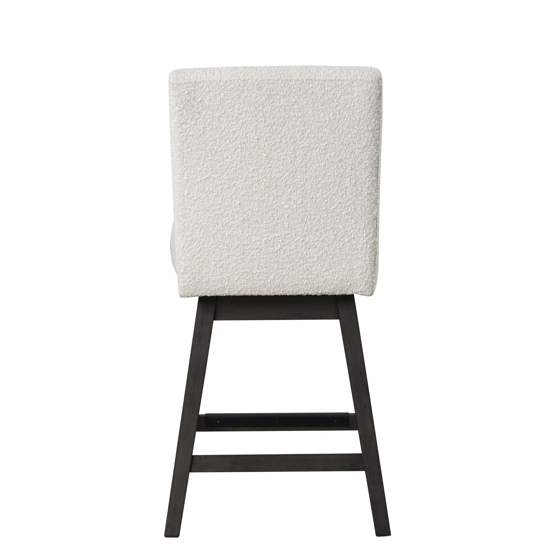 The High Line Counter Height Swivel Chairs offer a blend of durability, comfort, and functionality. Each set includes two counter swivel stools, expertly crafted from solid Acacia and Rubberwood, complemented by high-quality manufactured woods and Birch veneers to ensure long-lasting durability and stability. These chairs are upholstered in luxurious bouclรฉ fabric, known for its exceptional durability, making them ideal for frequent use. The unique looped texture provides a plush, comfortable seating experience, adding both elegance and longevity to your dining area. The side-to-side 180ยฐ swivel feature allows for easy conversation, making these chairs perfect for dining rooms, kitchen islands, bars, or as accent chairs. They add both functionality and aesthetic appeal to any space. The High Line Counter Height Swivel Chairs are a versatile and stylish addition to any home, combining practical features with a touch of sophistication.