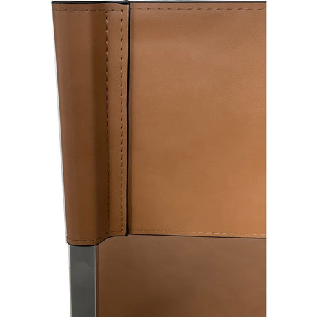 One Modern Coastal Director's Dining Arm Chair in Cognac and Brushed Stainless Steel
