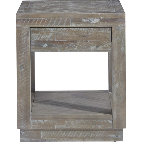 Herringbone Solid Wood One Drawer End Table in Rustic Latte