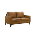 The Caspar Top Grain Leather Loveseat offers a perfect blend of luxury and comfort. Upholstered in rich caramel brown 100% top-grain leather, this loveseat boasts both durability and breathability, making it a timeless addition to any space. Engineered with zig-zag springs and webbed backrests, it provides superior support and long-lasting comfort. Meticulously tailored with box welted cushions and refined arm trims, the sleek, contemporary design reflects the essence of mid-century modern style. With generous seating, this loveseat ensures you and your guests can lounge comfortably, making it an inviting and stylish piece for your home.