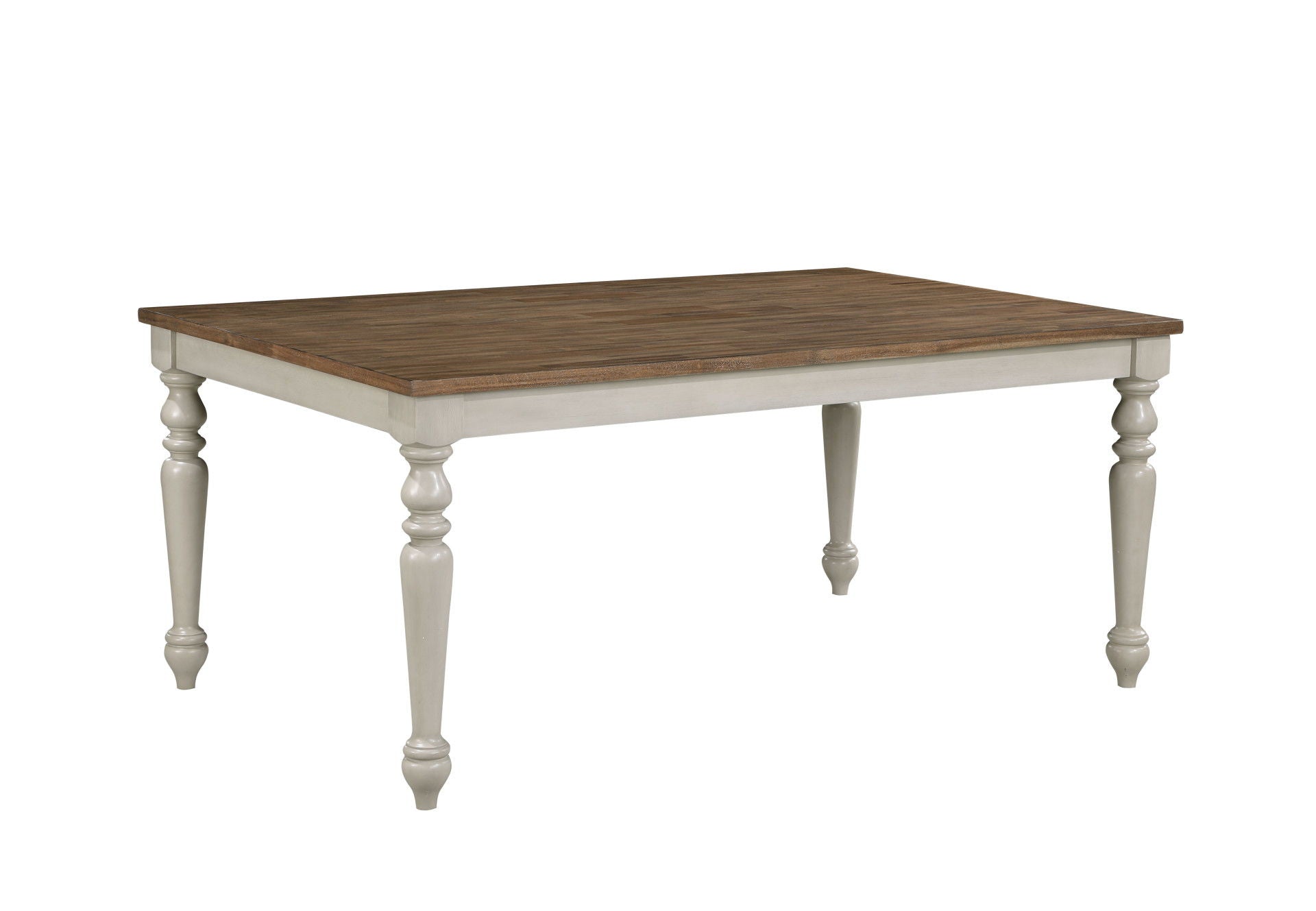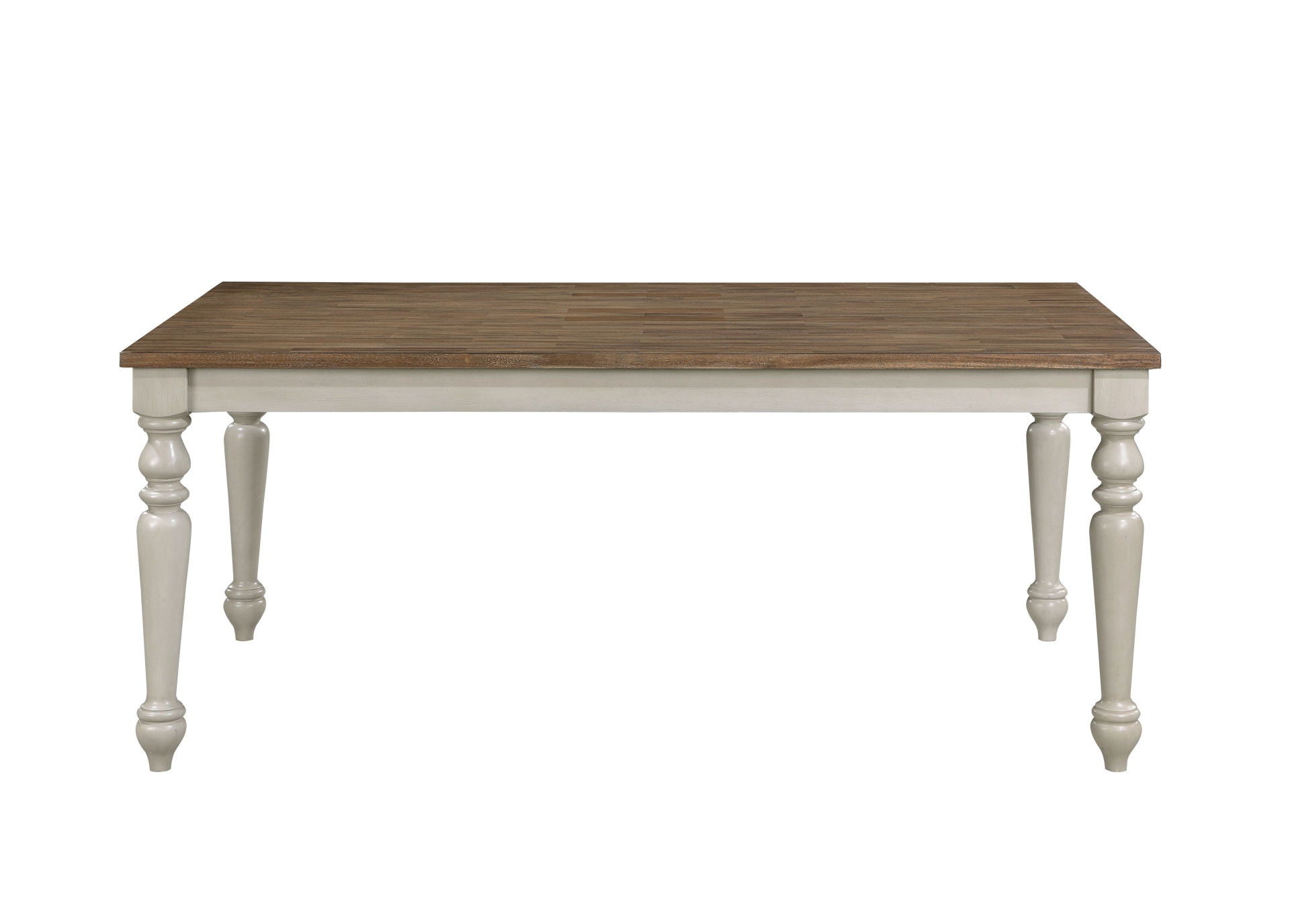 The Jennifer Wood 70' Dining Table brings together exceptional craftsmanship and timeless farmhouse charm, making it a centerpiece for any dining space. Constructed from solid Rubberwood, premium manufactured woods, and genuine Oak and Acacia wood veneers, this table is designed for durability and showcases the natural beauty of real wood. The soft, distressed two-tone finish, with a rich, natural wood tabletop and cream-colored, weathered base, creates a warm and inviting ambiance that complements traditional and cottage-inspired decor. The elegantly turned legs add a touch of rustic elegance, enhancing the table's classic appeal. With its 70' fixed-top, this table provides ample space for family gatherings, celebrations, and game nights, comfortably seating six. More than just a dining table, itโ€™s a place to gather, share meals, and create cherished memories.