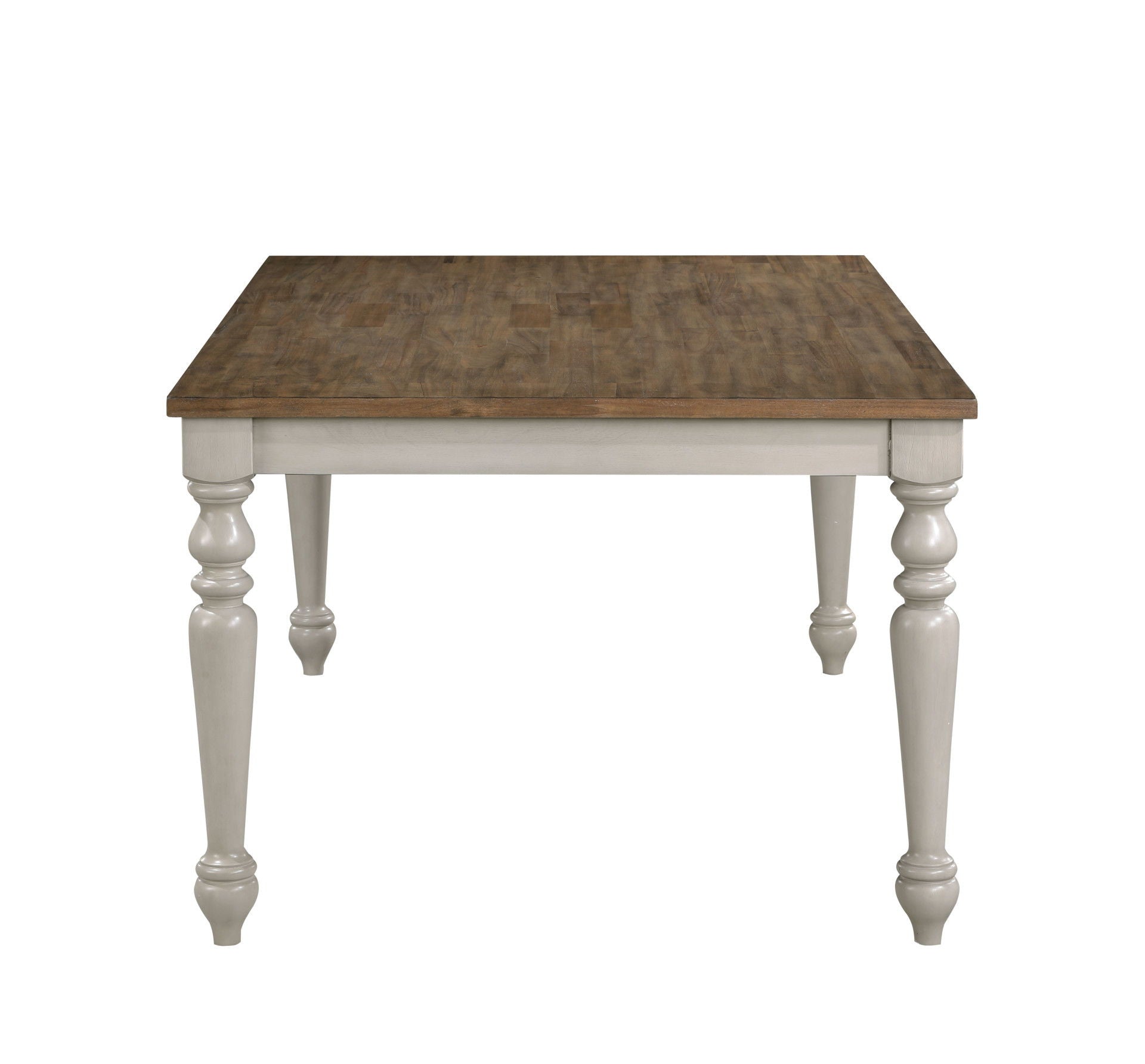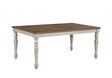 • Timeless Farmhouse Elegance: The soft, distressed two-tone finish exudes a vintage farmhouse appeal, where the rich, natural wood tabletop pairs harmoniously with the cream-colored, weathered base and legs. This expertly curated blend of textures and tones creates a welcoming ambiance, perfect for elevating any traditional or cottage-inspired dining space into a cozy, inviting retreat.