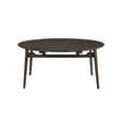 The Rex Mid-Century Modern 65' Round Dining Table with Self-Storing Leaves in Walnut Brown is a versatile and stylish addition to any dining space. Crafted from solid rubberwood, manufactured woods, and oak veneers, this table ensures exceptional stability and longevity. Its classic mid-century modern design features clean lines, rounded edges, and angled, tapered legs, embodying a timeless elegance. The multi-step walnut brown finish, hand-rubbed with a clear topcoat, enhances the natural beauty of the wood grain. This innovative dining table includes self-storing leaves that extend to provide roomy seating for six, making it perfect for both intimate meals and larger gatherings.