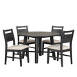 The Sable Crest 5 Piece Round Dining Set brings together quality and elegance in a design built to last. Made from durable Rubberwood, enhanced with premium engineered woods, and finished with real Oak wood veneers, this set offers the strength of real wood along with a refined look for your dining area. The sable black finish, completed in multiple steps with a brushed technique, reveals the rich wood grain, adding depth and sophistication to your space. Blending clean lines with a touch of farmhouse charm, this set fits seamlessly into both modern and traditional settings. Ideal for small dining areas, the 47' round table comfortably seats four, making it perfect for intimate gatherings. Each chair features a curved backrest for support, paired with plush upholstery for comfort, and a sturdy wooden frame for durability. This dining set is a practical yet stylish choice, enhancing the appeal of any dining space.