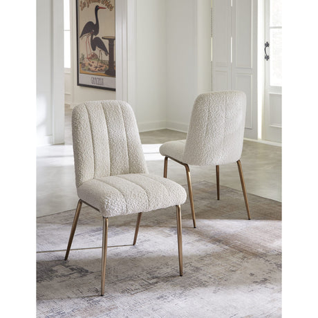 Apollo Upholstered Dining Chair in Ricotta Boucle and Brushed Bronze Metal