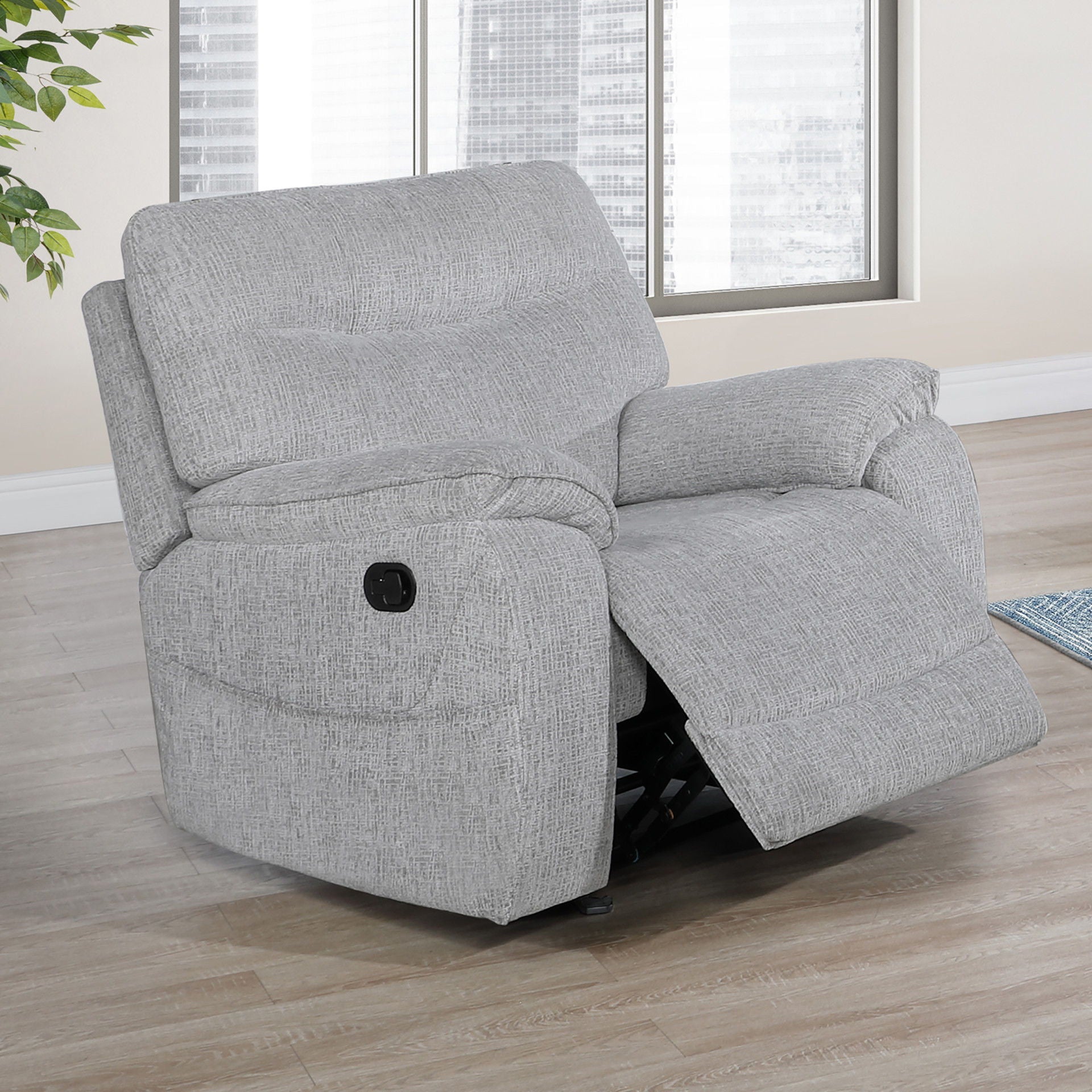 Experience the ultimate in relaxation and comfort with the Chablis Glider Recliner with Heat & Massage in Mist Gray. Expertly crafted with durable hardwood and plywood interior frames and reinforced by sturdy motion mechanisms, this recliner offers a strong, long-lasting foundation for everyday use. Upholstered in luxuriously soft, easy-care 100% polyester mist gray fabric, it delivers a cozy and inviting seating experience with a modern, sophisticated look. Designed for both comfort and durability, the plush foam cushions and resilient springs provide lasting support while maintaining their shape over time. Effortlessly recline and indulge in the soothing health benefits of built-in heat and massage functions, offering therapeutic relief and unparalleled relaxation. For added convenience, integrated USB Type-A and Type-C charging ports keep your devices powered and within easy reach. The Chablis Glider Recliner transforms your living space into a personal oasis of comfort and wellness.