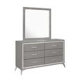 The Huxley Mirror offers a blend of contemporary glam and durable construction for your home. This mirror is carefully crafted from manufactured woods and eco-friendly decorative laminate, ensuring long-lasting quality. Featuring clean lines and a glossy finish, it adds a modern touch to any room. The rich finish provides a sleek, sophisticated look that is both timeless and modern, highlighting the metallic accents and smooth surfaces to create a chic, polished aesthetic. The low-distortion glass ensures a true reflection, making this mirror both functional and stylish.