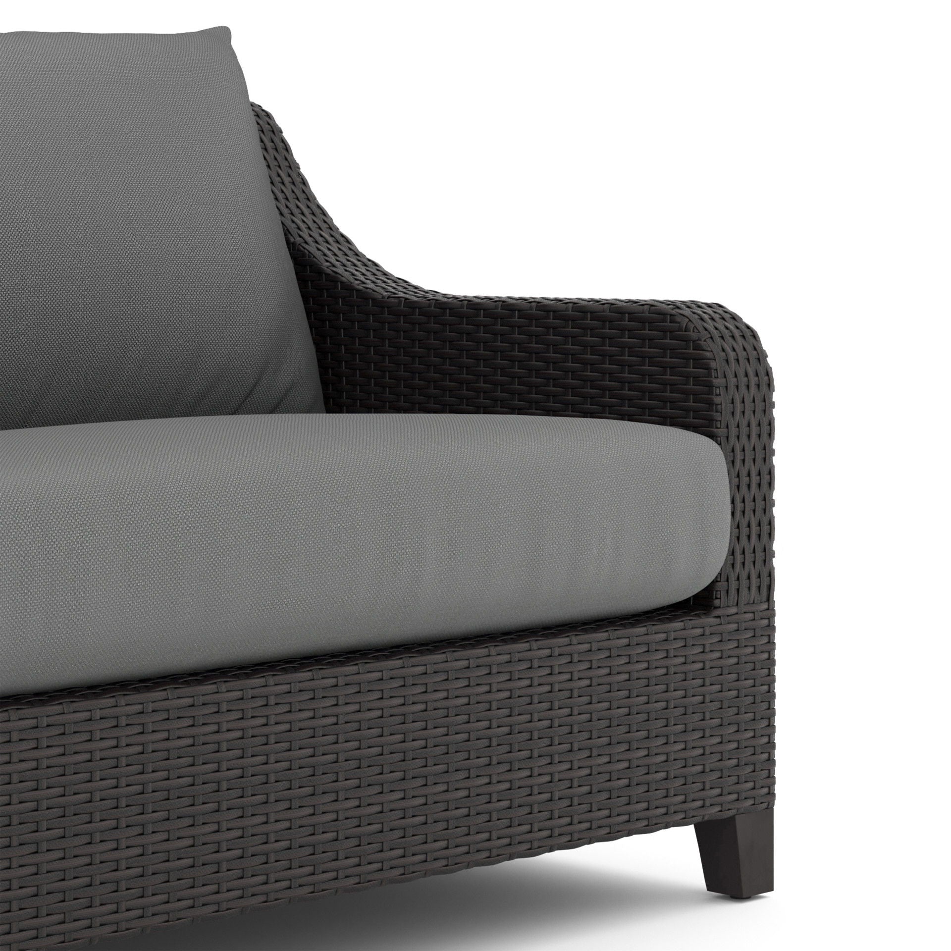 Revamp your outdoor space with the Skye 2-piece 3 Seater Sofa, accompanied by a matching Coffee Table. Crafted with aluminum frames boasting a baked-on powder finish, this set ensures robustness and enhanced scratch resistance. Its high-density HDPE Wicker offers all-weather durability, mimicking the look of natural wicker while remaining low maintenance and resistant to water, mildew, and fading. Sink into the supportive 6 1/2' thick seat cushions, crafted from high-density foam for enduring comfort. The exclusive SUNDURAยฎ Olefin fabrics are not only breathable but also colorfast and resistant to water, stains, mold, and mildew, ensuring your outdoor furniture stays pristine year-round. With sweeping backs, thick armrests, and gentle curves, this set exudes a versatile style perfect for any outdoor entertainment area. Plus, the durable powder-coated aluminum slat top coffee table offers convenience for any occasion, whether it's drinks, snacks, or simply a spot to rest your feet.