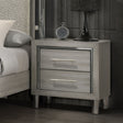The Lennox 2-Drawer Nightstand in Gray is the perfect blend of modern elegance and lasting durability, designed to elevate your bedroom. Crafted with premium engineered woods and an eco-friendly gray ash laminate, its sleek, contemporary design brings both style and functionality. Lustrous metallic trim accents complement the light gray finish, adding a sophisticated touch that enhances its modern appeal. Superior craftsmanship shines through with its spacious drawers, expertly constructed with four-corner English dovetail joinery and smooth ball-bearing glides, ensuring effortless operation and long-term durability. The Lennox Nightstand combines practicality with refined style, making it a standout piece for any space.