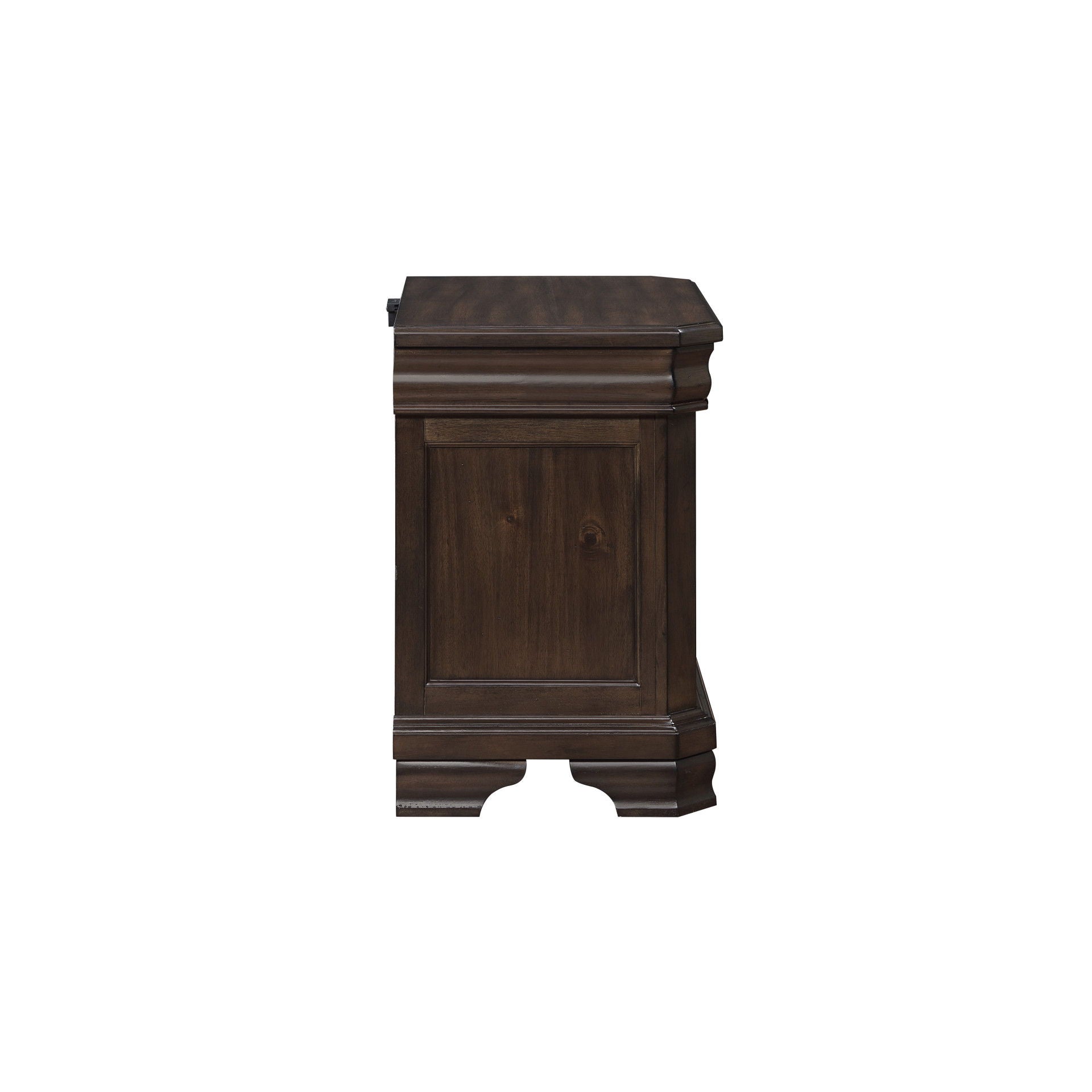Introducing the Lyndhurst Nightstand β€” an essential piece for any bedroom sanctuary. Crafted from solid Acacia, Acacia veneers, and manufactured wood, this nightstand ensures lasting durability. Its heirloom finish, achieved through meticulous distressing, burnishing, and glazing, enhances the wood's natural beauty. Substantial moldings, bracket feet, and ornate hardware define its masterful style, making it a statement piece in any space. Inside, drawers are crafted with English dovetail joinery, full extension drawer glides, and finished interiors, with velvet-lined top drawer to protect delicate items. Experience modern convenience with the two-drawer design, equipped with a USBC charging station to keep your devices running smoothly. Plus, a discreet velvet-lined compartment hides behind the molding, providing additional storage for jewelry. Elevate your bedroom decor with the timeless elegance and functionality of the Lyndhurst Nightstand.