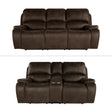 The Brookings Reclining Sofa Set is a perfect blend of style and comfort for your living room. Upholstered in soft hand polyester/PU fabric that mimics the look of real leather without the hefty price. The pillowed arms, double-stitched racetrack arms, bucket seats, and plush backrests, all featuring distinctive baseball contrast stitching, create a standout style statement. Enjoy the ultimate comfort with fully upholstered chaise recliner footrests. The sturdy construction of hardwood and manufactured wood frames, coupled with coil spring cushions wrapped in resilient foam and polyester, ensures durability and long-lasting support. The no-sag seat suspension further enhances comfort. For added convenience, the loveseat''s center console offers handy storage for remote controls and built-in cupholders for your beverages. The Brookings setโ€™s leather-look upholstery and neat tailoring lend a comfortable, lived-in ambiance to your home. Experience unparalleled comfort and practicality, making this a must-have addition to your living space.