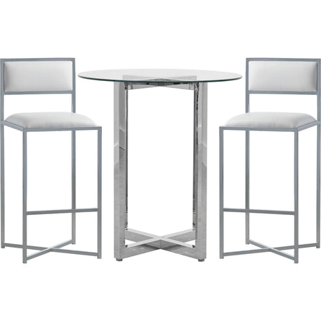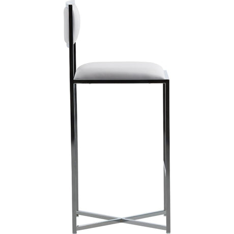 Dion Upholstered Counter Stool in Natural Light Linen and Brushed Nickel Metal