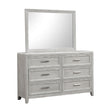 The Fiona Mirror is constructed from solid Acacia, manufactured woods, and oak veneer promising both aesthetic appeal and enduring quality. The natural wood grain is accentuated through a meticulous multi-step finish, culminating in a light, mist gray hue achieved via wire brushing and white glazing. Its classic silhouette is defined by picture frame moldings. The Fiona Mirror seamlessly adapts to various interior styles, from traditional to modern. Its expansive, low-distortion glass ensures a pristine reflection.