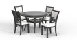 The elegant Gia 5 Piece Dining Table and Chair Set is built with durability and comfort in mind. This dining set provides spacious seating for four, and a handy storage shelf located under the table top to store dinnerware or decor. The dining table apron, table legs and dining chair legs are crafted of solid Rubberwood to add strength and stability. The distinctive reverse diamond Mindi wood veneer dining table top accents the beautiful wood grains which are highlighted by the multi-step finish, with just a touch of red for richness. The set includes four comfortable dining chairs with pu upholstered seat cushions and backrests. The final touch is Gia's signature interlocking chain design on the chair back, giving this welcoming dining set a touch of sophistication. The result is a casual, contemporary dining set, perfect for your dining room or kitchen.