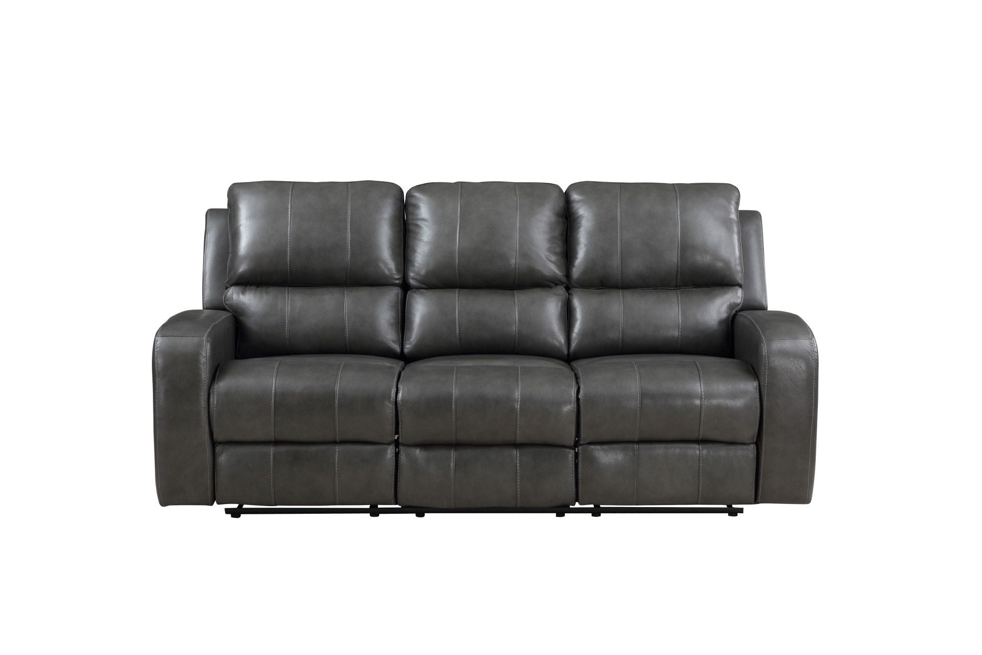 The Linton Top Grain Leather Dual Recliner Sofa offers a perfect blend of durability, luxury, and comfort. Upholstered in top-grain leather, this sofa combines exceptional strength with a smooth, refined finish that only gets better with time. Designed for lasting durability, it exudes a sophisticated charm while offering a comfortable feel. The hardwood and manufactured wood frames, paired with coil spring cushions wrapped in resilient foam and no-sag seat suspension, provide outstanding support and comfort that will bring you years of enjoyment. With sleek racetrack arms, plush bucket seats, and meticulously tailored backrests featuring distinctive contrast stitching, this sofa makes a bold and contemporary style statement. The smooth-action recliner mechanisms allow you to lay back and elevate your feet effortlessly, offering the ultimate in relaxation for those moments when you need to unwind in style.