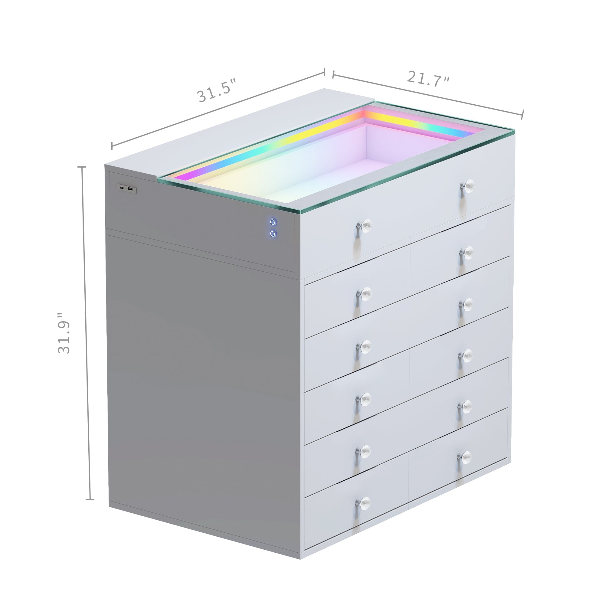 Upgrade your storage game with this stunning cabinet! Boasting 11 drawers with crystal handles, it features a built-in RGB light strip—adjust colors or activate rainbow mode for a vibrant vibe. USB & Type-C ports add practicality, and easy assembly makes it a hassle-free, stylish addition to any room!